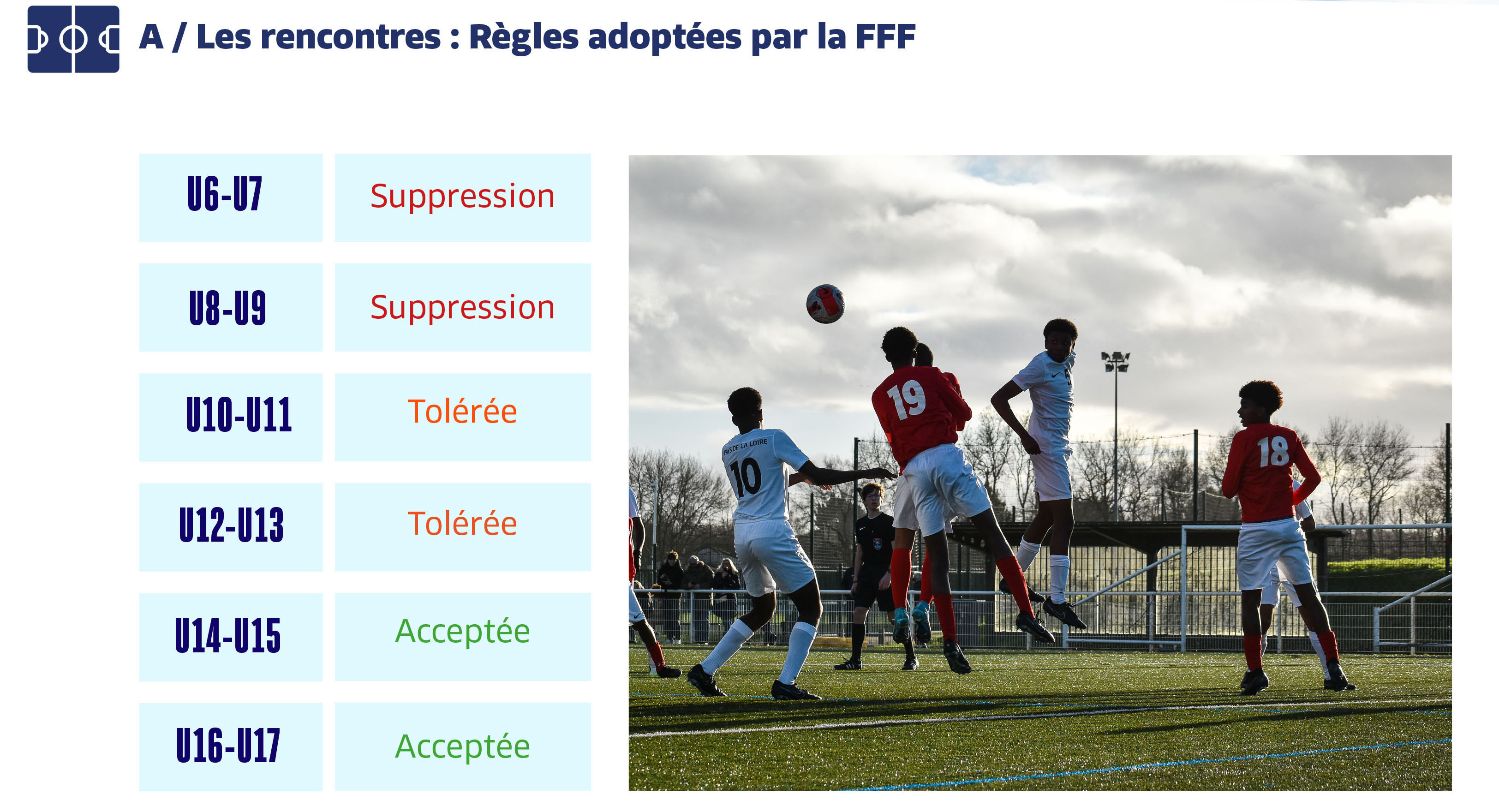 Aucun temps d’entraînement sur le jeu de tête des U6 aux U9 inclus.