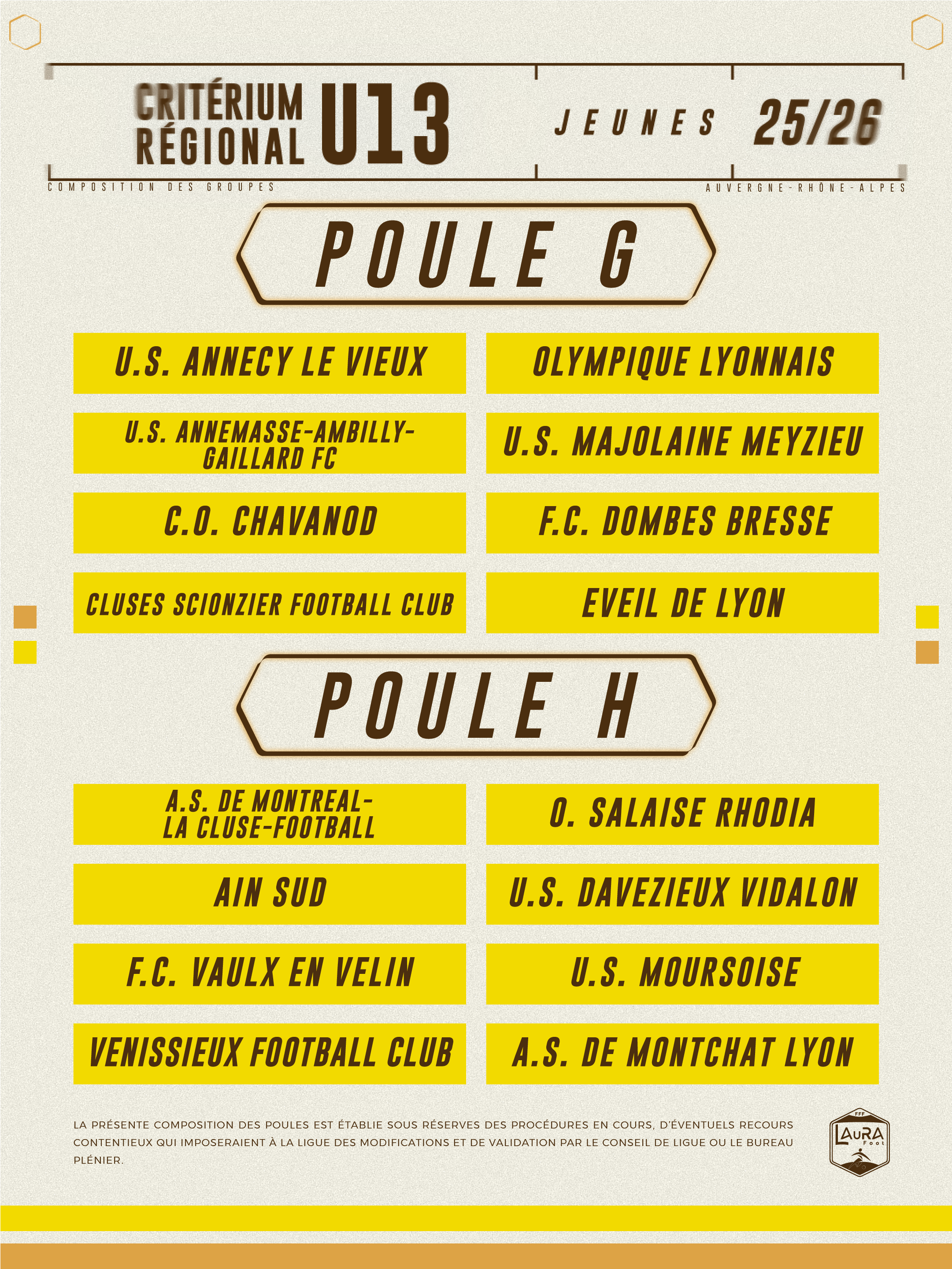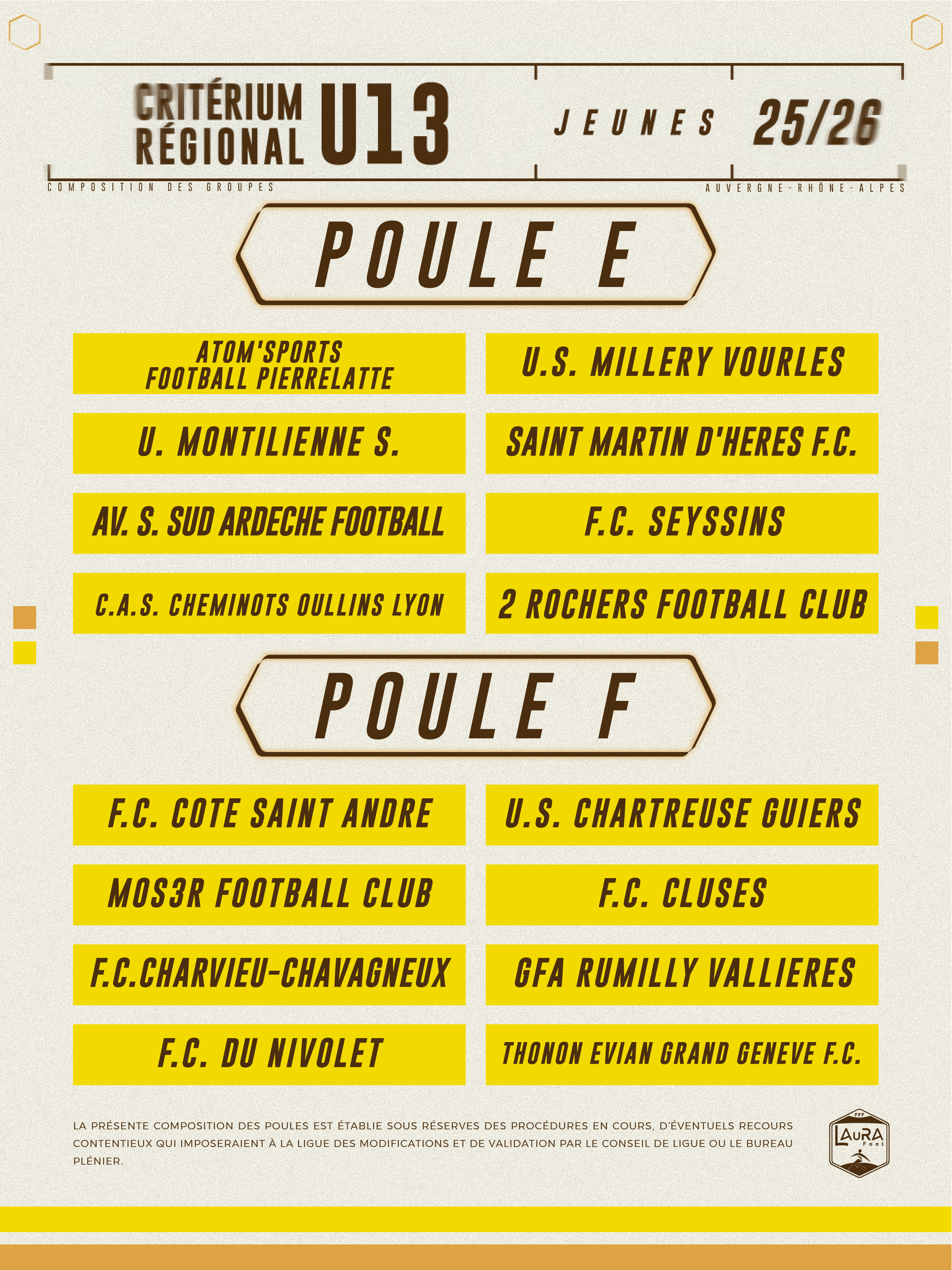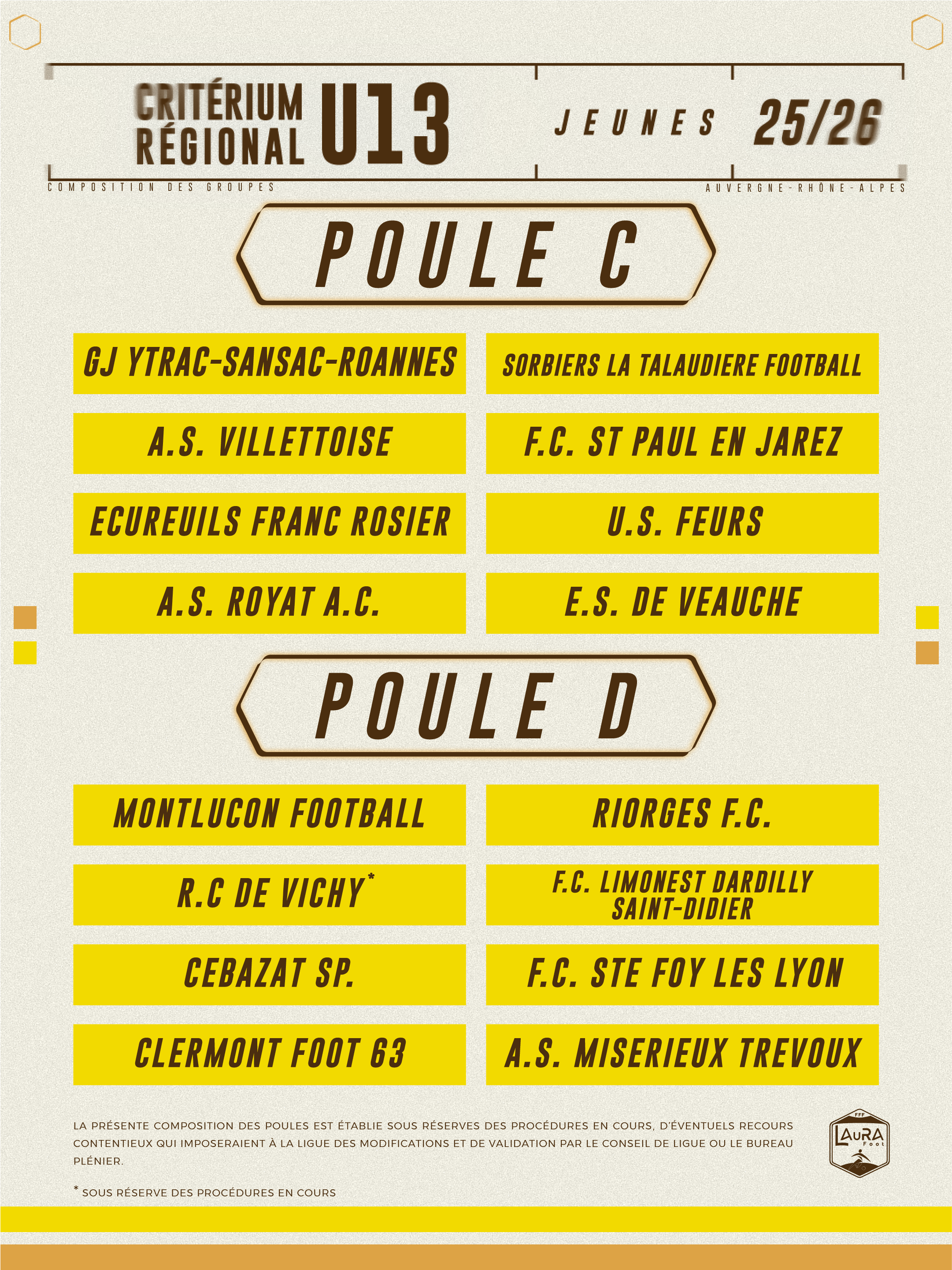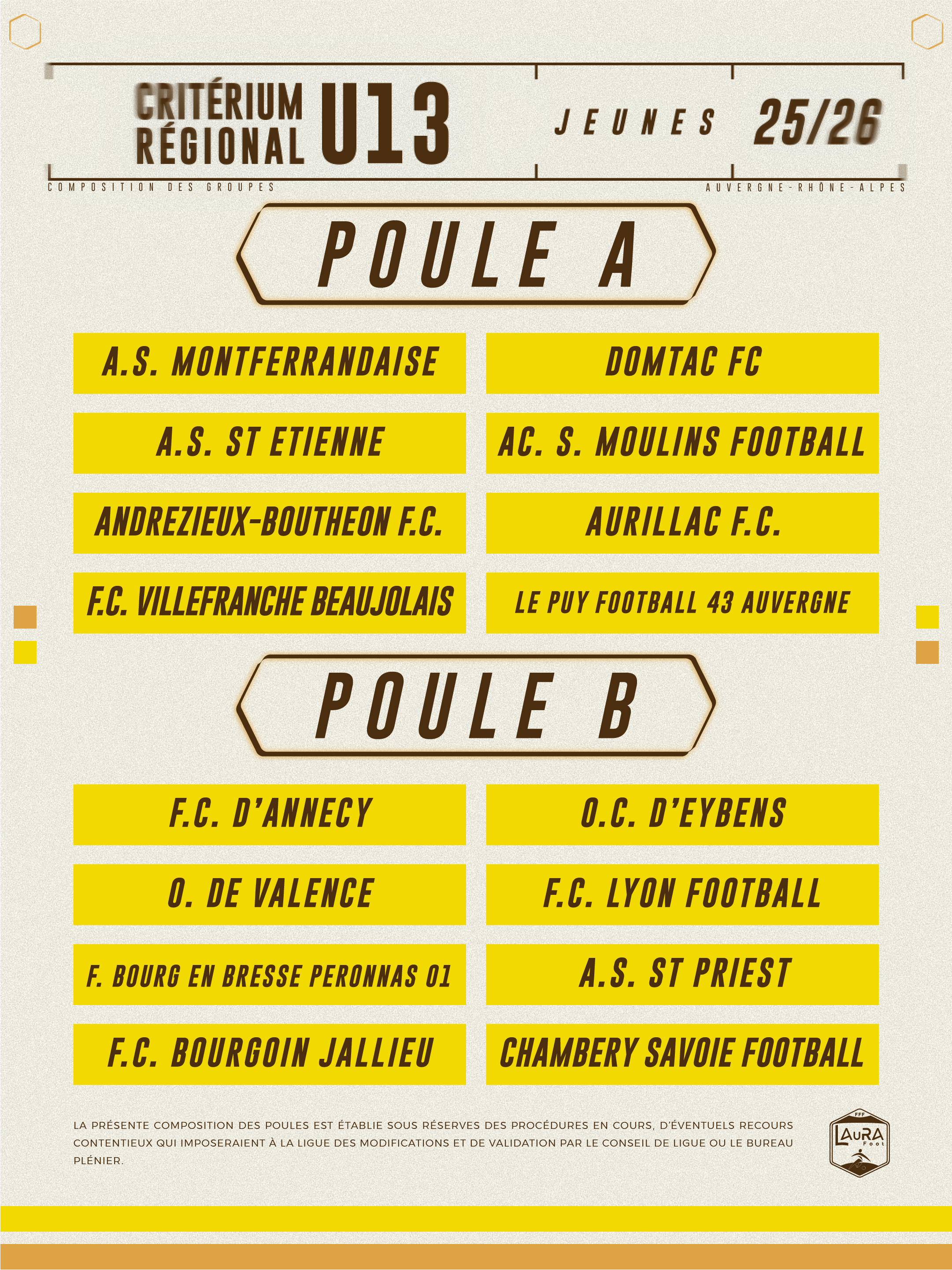 Criterium Régional U13 : la composition des poules