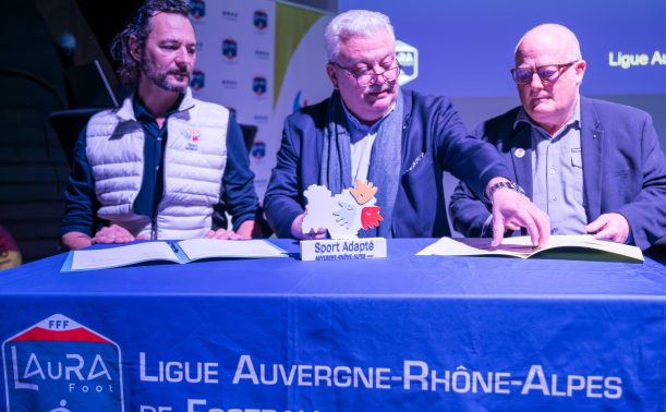 A l’occasion de la 2ème édition de la Soirée de la Ligue (27 mars 2026), la Ligue Auvergne-Rhône-Alpes de Football a renouvelé ses conventions de partenariat avec la Ligue Auvergne-Rhône-Alpes du Sport Adapté et la Ligue Auvergne-Rhône-Alpes Handisport.