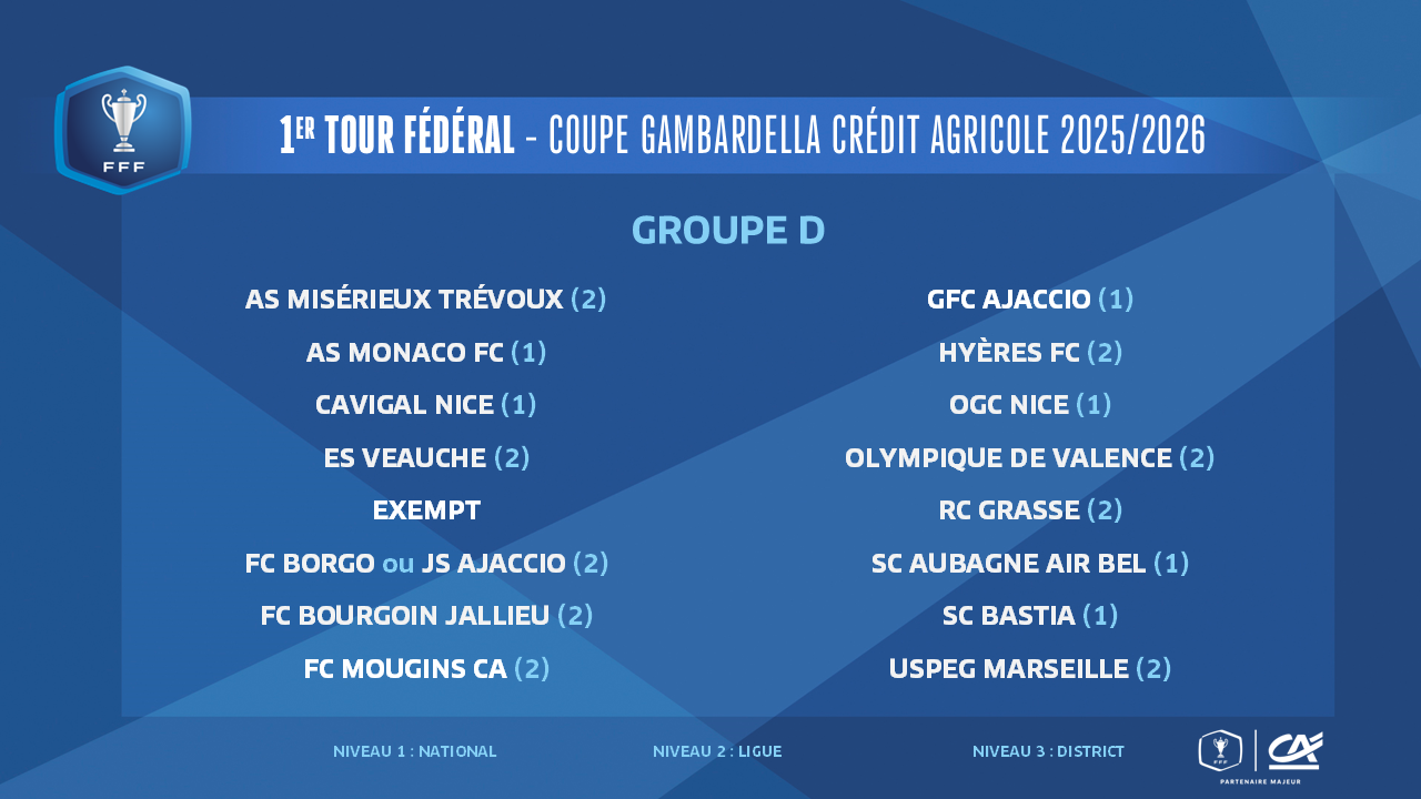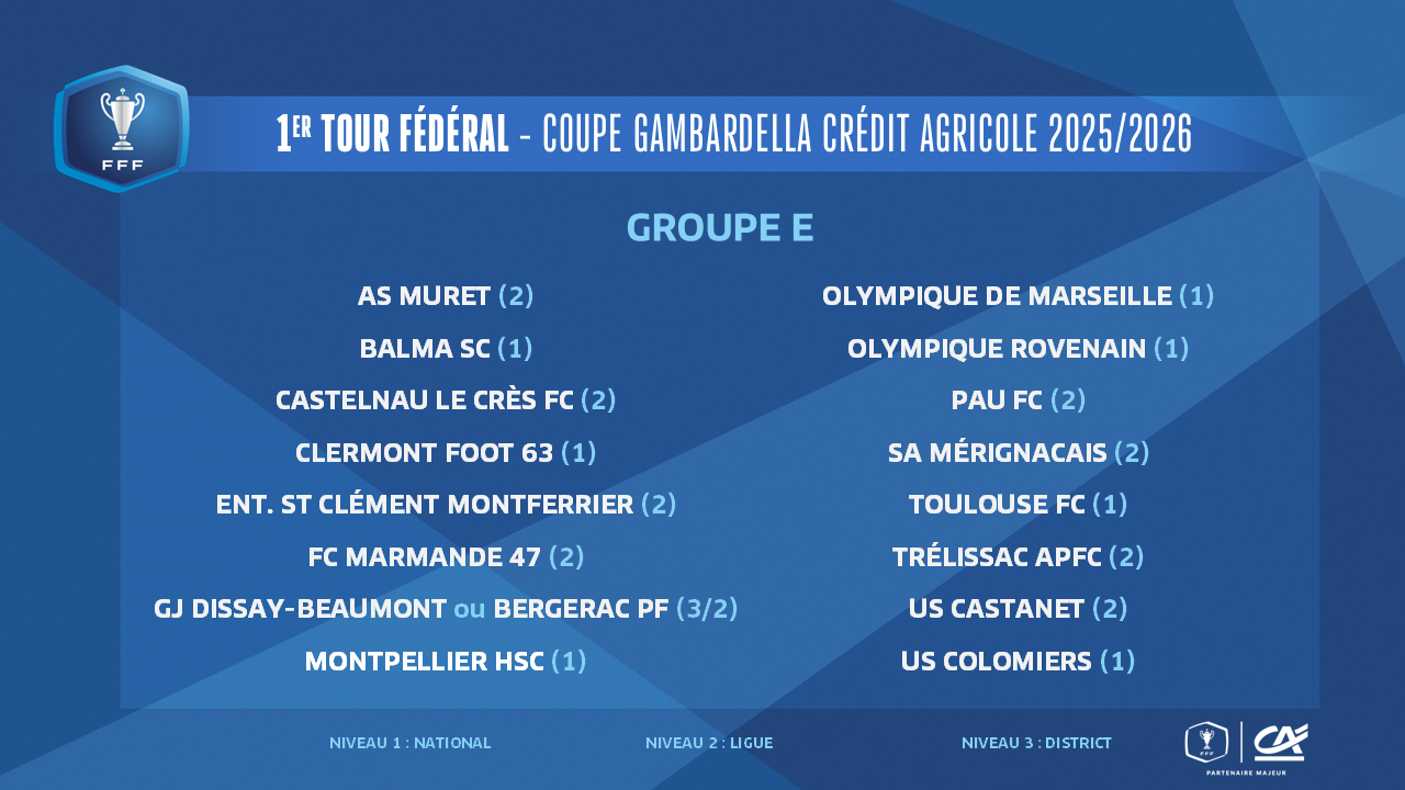 Le tirage au sort du 1er tour fédéral de la Coupe Gambardella Crédit Agricole 2025-2026 a été effectué ce midi à la FFF (12h00, en direct sur YouTube FFF).