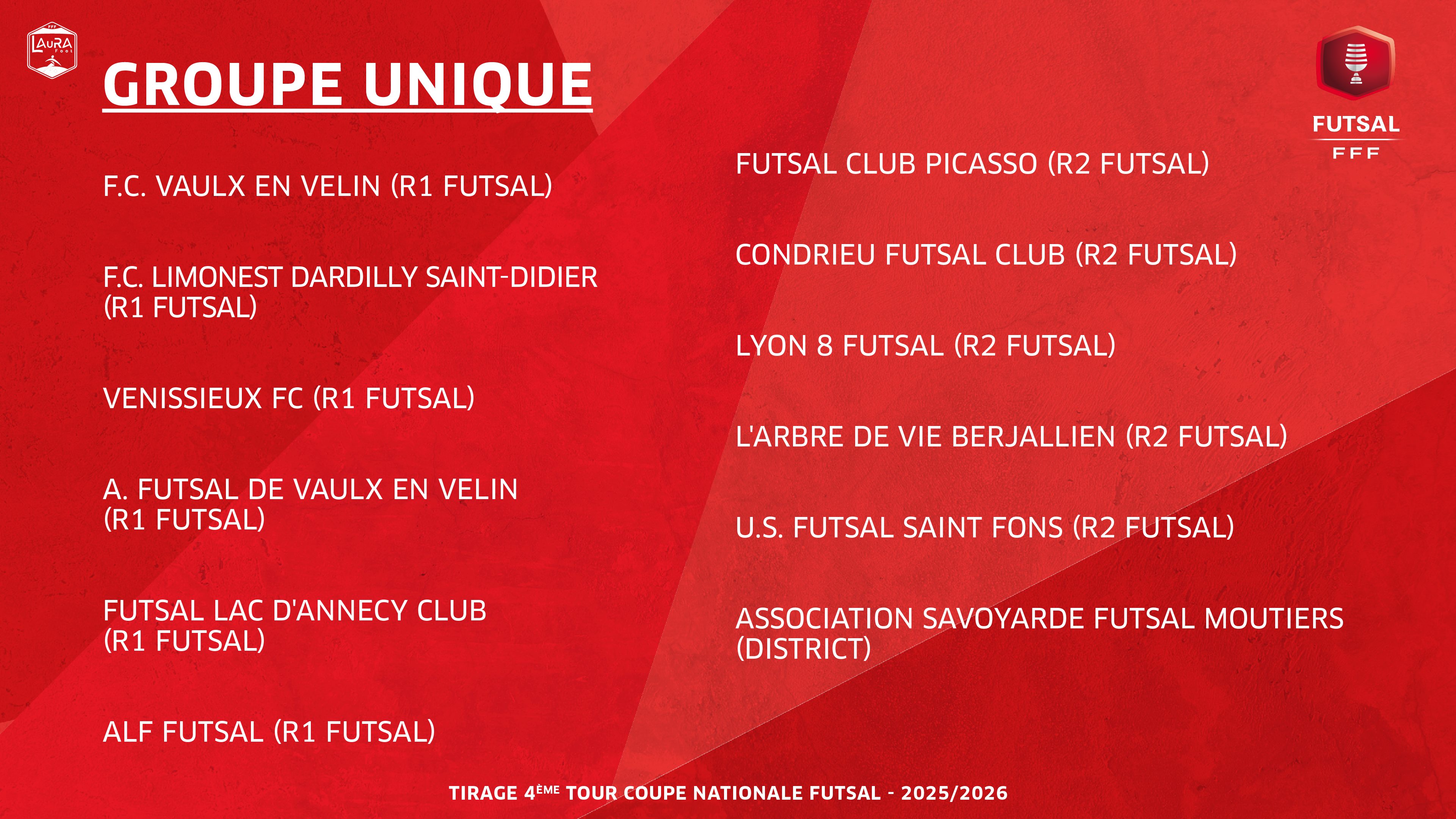 > Calendrier de l’édition 2025-2026 de la Coupe nationale Futsal – Trophée Michel Muffat-Joly :