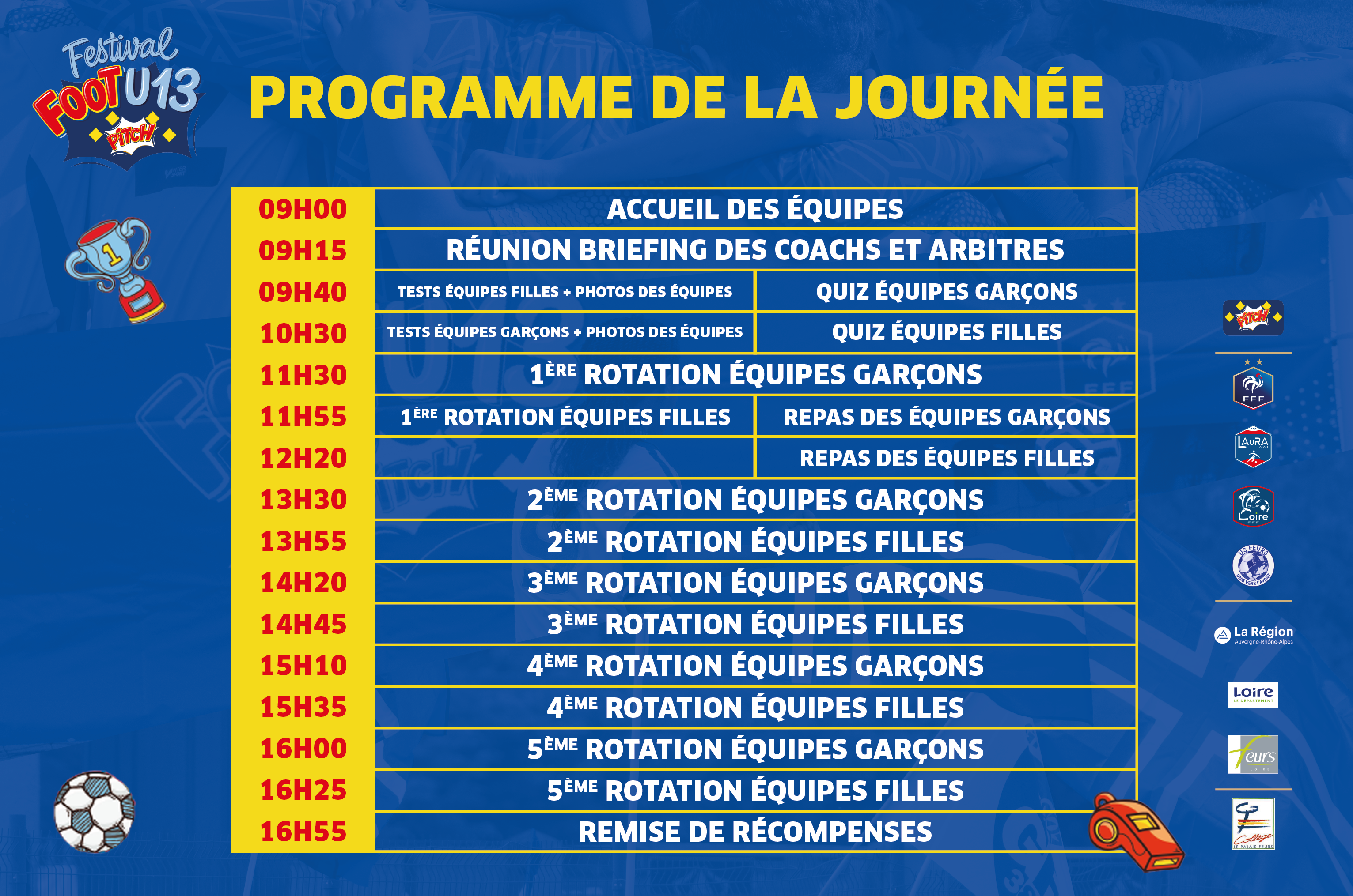 La phase régionale du Festival Foot U13 Pitch se déroulera ce samedi 02 mai 2026 au Stade Maurice Rousson de Feurs (42).