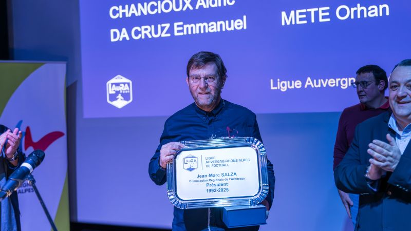 Un hommage appuyé a été rendu par le Président de la Ligue à Jean-Marc SALZA (notre photo ci-dessous), Président de la Commission Régionale de l’arbitrage pendant 33 saisons de 1992 à 2025.