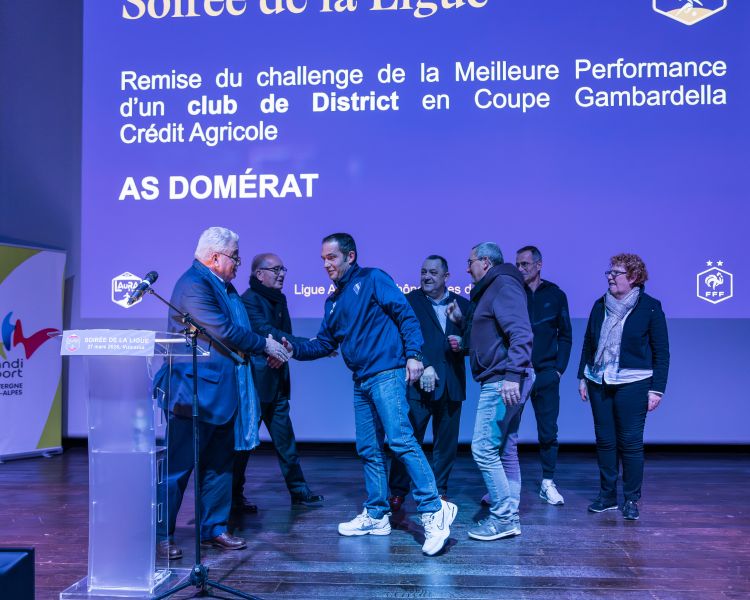 Les clubs de niveau District et Ligue ayant brillé cette saison dans les coupes nationales ont été également récompensées : l’AS Domérat pour son parcours en Coupe Gambardella Crédit Agricole et le FC Riorges en Coupe de France Féminine. Le FC Bourgoin-Jallieu, la Société Sportive Allinges et le FC St Cyr Collonges Mont d’Or ne pouvant être présents recevront leur challenge respectif à une autre occasion.