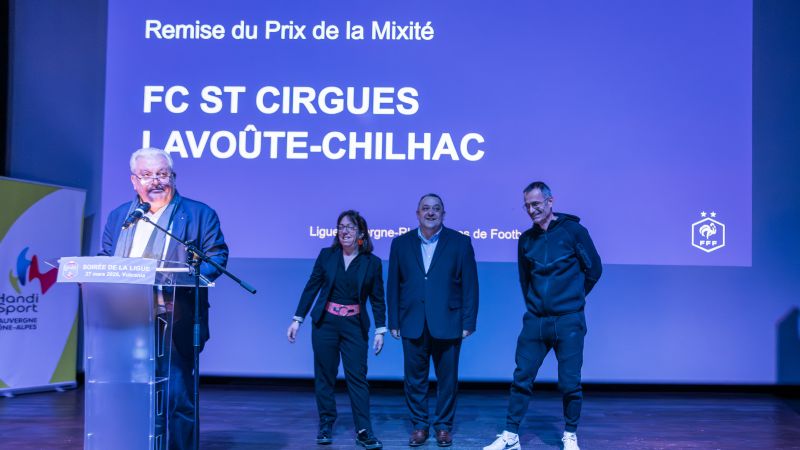 Les champions de la mixité (voir notre article), le FC St-Cirgues Lavoûte-Chilhac et le Sporting Club Ouest Lyonnais (SCOL), ont été invités à participer à cette soirée. Le FC St Cirgues Lavoûte-Chilhac (District de Haute-Loire) avec un taux de 100% de femmes au sein de son équipe dirigeante composée de 11 bénévoles (10 licenciées dirigeantes et 1 volontaire) remporte le classement du meilleur pourcentage de femmes au sein de l’équipe dirigeante. Le SCOL (District de Lyon et du Rhône) remporte le Prix de la Mixité en totalisant en nombre le plus de dirigeantes et/ou volontaires : 35 femmes dirigeantes et ou volontaires.