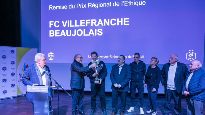 Le FC Villefranche Beaujolais représenté par son Président, Philippe Terrier (notre photo ci-dessous), a été également mis à l’honneur avec la remise du Prix Régional de l’Ethique (2024-2025). Ce prix est la combinaison des classements du Challenge de la Sportivité et du Fair-Play. Il concerne les clubs ayant au moins trois équipes disputant un championnat de Ligue : une équipe senior et deux équipes de jeunes. Palmarès 2024-2025 (Prix Régional de l’Ethique) : 1 – F.C. Villefranche Beaujolais, 2 – F.C. D’Annecy, 3 – F.C. Chamalières
