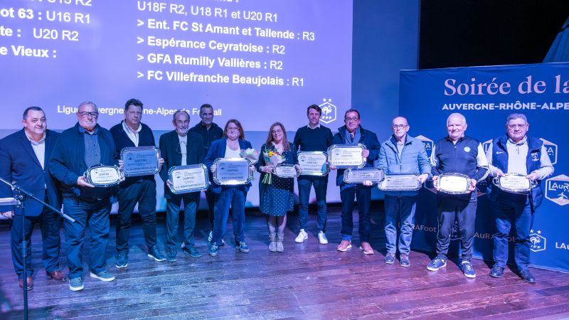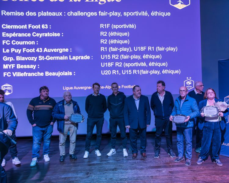 Enfin les clubs champions de la saison 2024-2025 ayant répondu favorablement à l’invitation de la Ligue, Le Puy Foot 43, Clermont Foot 63, US La Murette, FC Pontcharra St-Loup, AS Montferrand, Entente FC St Amant et Tallende, Espérance Ceyratoise, GFA Rumilly Vallières et le FC Villefranche Beaujolais ont été appelés et ont reçu le plateau célébrant leur titre.