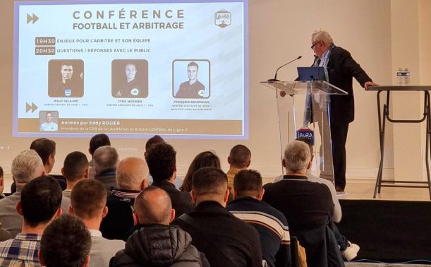 La Ligue Auvergne-Rhône-Alpes de Football et sa Commission Régionale de l’Arbitrage ont proposé, vendredi 14 novembre dernier, une première conférence « Football et Arbitrage », ouverte à l’ensemble du public intéressé par les enjeux du haut niveau.